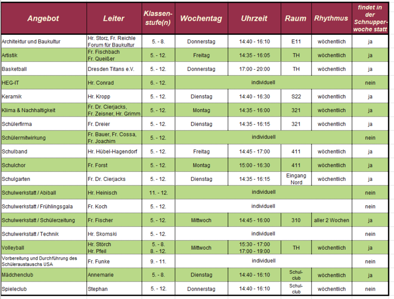 Aktuelle, kurzfristige Informationen über Verlegungen bzw. Ausfälle einzelner Angebote werden im GTA-Schaukasten im Schulhaus ausgehangen.