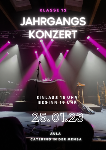 Da sich unser erstes Halbjahr schon zum Ende neigt und damit unsere Prüfungen immer näher rücken, schiebt sich auch der Abiball nun in den Fokus. Dieser bedarf bekanntlich gründlicher Organisation, aber auch finanzieller Unterstützung. Der Eintritt für unser Konzert ist frei, wir freuen uns aber sehr über Spenden, mit denen Sie uns helfen, unsere Feierlichkeiten zu ermöglichen.