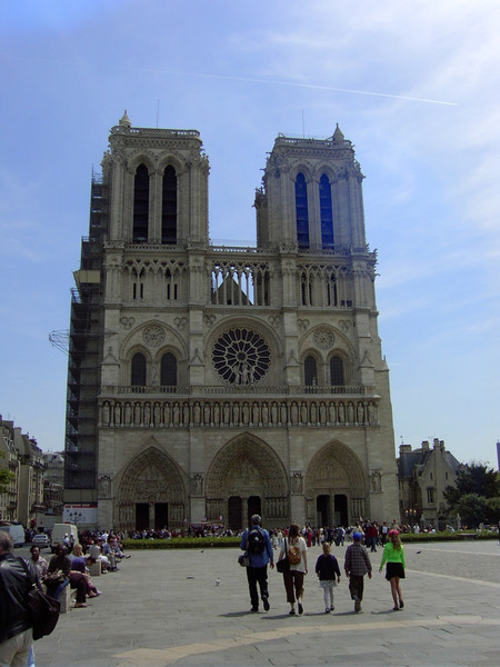 In Paris angekommen suchten wir erstmal 1 1/2 Stunden einen Parkplatz für den Bus und danach konnten wir endlich mit der Métro in die Stadt fahren. Als erstes gings zur "Ile de la cité" die Nôtre Dame besuchen, welche wir bei schönstem Wetter besichtigen konnten und von der wir auch sehr viele Eindrücke der Baukunst und der Fensterbilder sammelten. Danach ging es über eine der vielen Brücken über die Seine in Richtung "Louvre". Schon allein der Eingang des Louvres war prunkvoll und gewaltig gebaut, wie übrigens viele Pariser Gebäude, und bei dem, "Louvre" angekommen haben wir erstmal eine kleine Pause gemacht und sind dann über die "Champs-Elysées" zum "Arc de triomphe" gelaufen. Die "Champs-Elysées" ist eine der prachtvollsten Straßen Paris und einfache Läden gibt es dort nicht! Beim "Arc de triomphe" fanden wir superviele Menschen vor, die genau dieses beträchtliche Bauwerk besichtigen wollten. Die Torbögen sind höchste Baukunst und die Namenslisten der Familie "Bonaparte" sind gewaltig! Es ist einfach die Gedenkstätte Napoleons. Nach dem "Arc de triomphe" liefen wir zu der wohl wichtigsten Sehenswürdigkeit - dem Eifelturm! Es ist der reine Wahnsinn, wenn man dieses riesige Stahlbauwerk von unten betrachtet und dann auch noch denken darf: Wow, und da wollen wir rauf - in 300 m Höhe. Gesagt getan. Nachdem die Karten besorgt waren fuhren wir mit dem Lift in die 2. Etage und von dort aus nach ganz oben! In 300 m Höhe genossen wir einen herrlichen Ausblick auf ganz Paris. Wir suchten einige Gebäude, wie die "Nôtre Dame", die "Sacre Coeur" usw. Es wurden Fotos gemacht bis zum Geht nicht mehr. Es war einfach super, dass wir das alles erleben durften! Später ging es dann für viele von uns ins Hotel, aber einige gingen noch zur "Sacre Coeur". Es war eine ruhige Nacht im Hotel, in der wir endlich wieder ordentlich schlafen konnten (im Bus ging das zwar, aber es war ziemlich ungemütlich!).