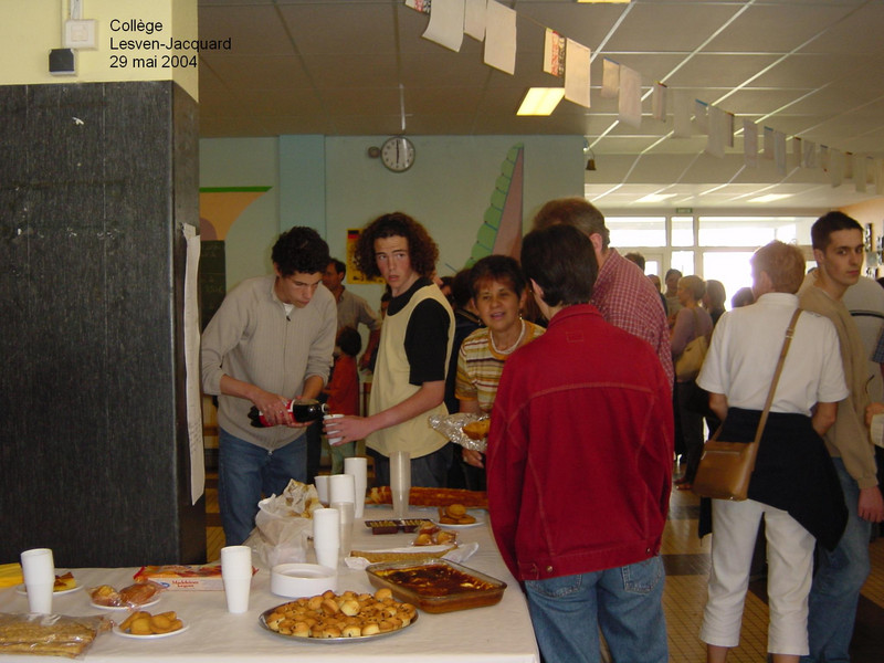 Erst einmal das sehr ungewohnte:... am Samstag früh aufstehen... Nach einer 5-Minuten-Frühstückszeit fährt uns der Vater von meiner Corres zur 2 km entfernten Haltestelle des überregionalen Busses, der -für mich ungewohnt- 20 min bis zur Schule braucht. Da es für meine Corres kompliziert geworden wäre, blieb ich im Lycée. Auch interessant, obwohl die ersten -und für den letzten Schultag einzigen- 2 Stunden ein etwas undurchsichtiger französischer Film geguckt wurde. Danach war warten auf die anderen angesagt, die Zeit verging aber sehr schnell, denn ich wurde aufgeklärt, was der 6. Juni für ein wichtiger Tag im Leben eines Franzosen ist. Nachdem die Leute vom Arsenal zurückgekommen waren, zogen wir los Brest in Sachen Shopping unsicher zu machen. Après Shopping besuchten ich und meine Corres noch deren Schwester im Krankenhaus und spät am Abend war die gesamte Familie auf einem bretonischen Fest. Bloss gut, dass wir im Collège schon ein paar Feste kennengelernt hatten! :-)