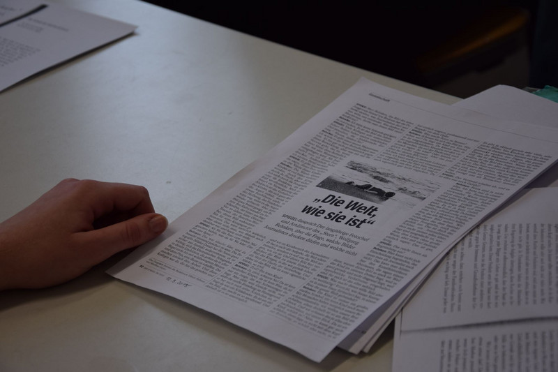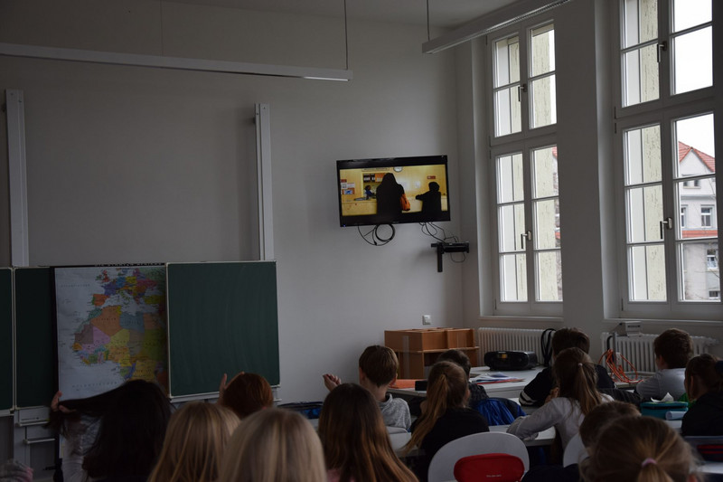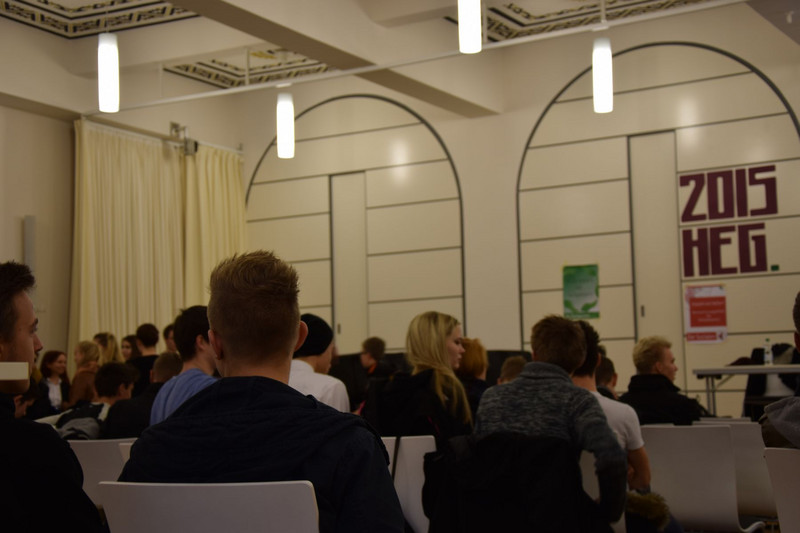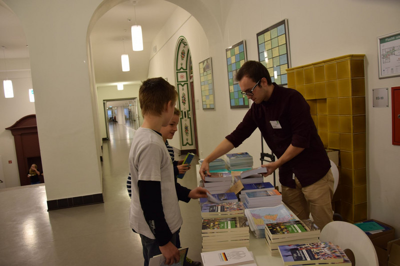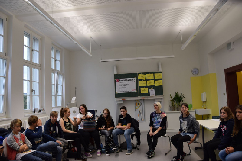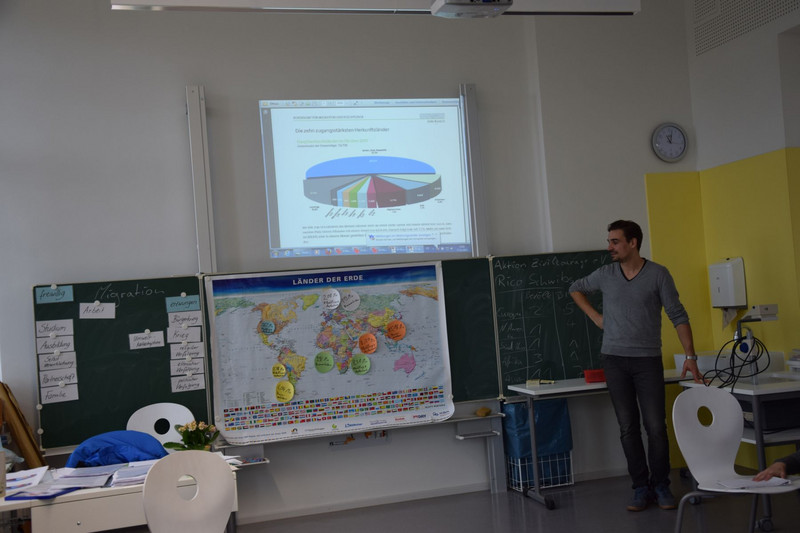 Ungefähr 60 Schüler der Klassenstufen 10 bis 12 trafen jedoch noch vor ihrem Workshop in der Aula ein. Denn für sie hielt der Oberbürgermeister von Dresden, Herr Dirk Hilbert, ein Referat zum Thema „Flüchtlinge und Asyl in Sachsen“. Hier wurden aktuelle Zahlen genannt und zukünftige Pläne zur Bewältigung des Flüchtlingsstroms erläutert. Schließlich trug sich Dirk Hilbert noch in das Ehrenbuch unserer Schule ein.