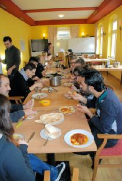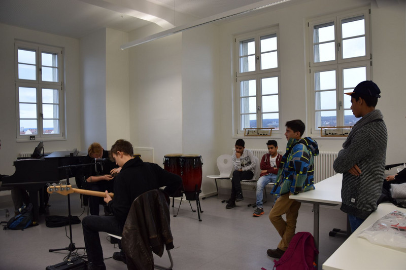 In diesem Jahr hatten wir neben den vielen prominenten und engagierten Elternvertretern und Workshopleitern noch ganz besondere Gäste im Haus: Flüchtlinge waren zu uns gekommen, um gemeinsam mit uns zu malen, mit der Schulband zu musizieren oder auch von den Erlebnissen in ihrer Heimat sowie während der Flucht zu berichten.