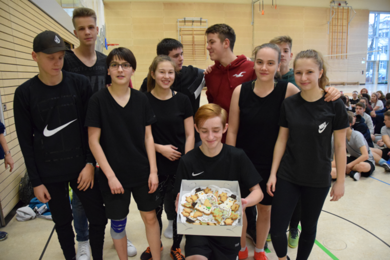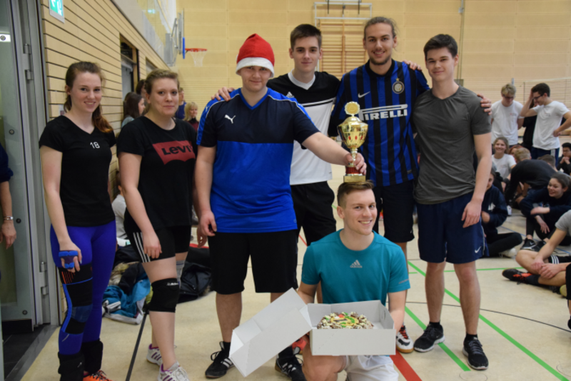 Am letzten Schultag vor Weihnachten fand das traditionelle Volleyballturnier der Klassen 9 – 12 statt. 16 Schülermannschaften und ein Lehrerteam traten im sportlichen Wettstreit gegeneinander an. Bei der Durchführung (Schiedsrichtertätigkeit; Rechenbüro; …) wurden die Sportlehrer sehr lobenswert von Schülern unterstützt. Die „Ehemaligen“ stellten nach ihrer Vorjahresniederlege die beste Mannschaft des Turniers und erreichten den 1. Platz. Zweiter wurde der Leistungskurs Geschichte Klasse 12. Unter großem Jubel konnten die Klassen 9/2 und 9/1 den 3. und 4. Platz erlangen.