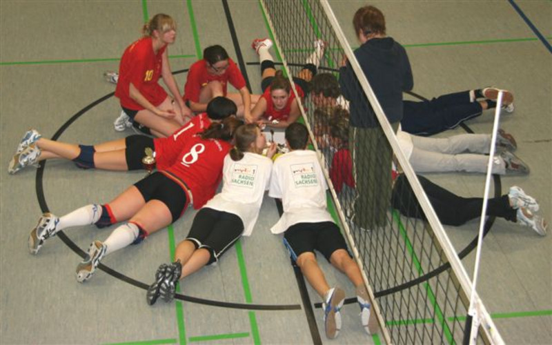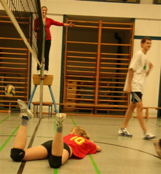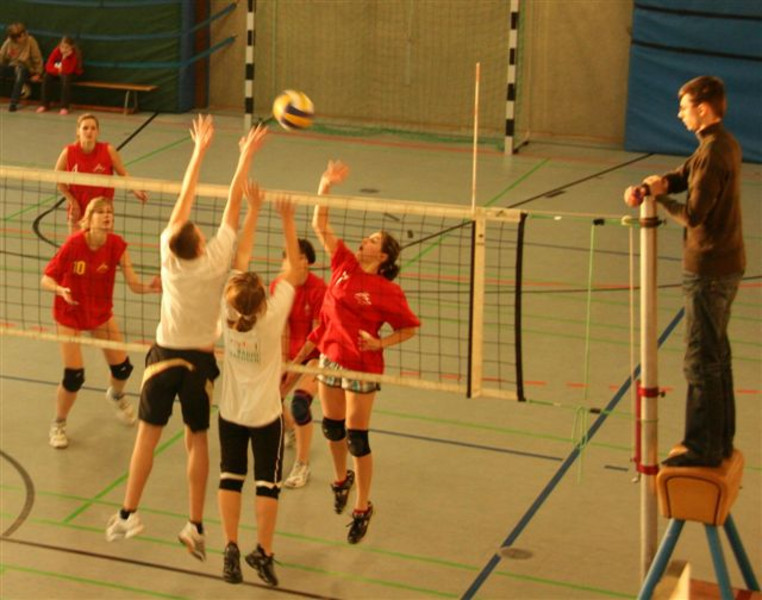 Die Mannschaft des 1.PVC belegte nach aufopferungsvollem und teilweise hart an die Substanz gehenden Kampf wieder den dritten Platz. Besondere Anerkennung gilt dabei den drei Lehrerinnen Frau Jork, Frau Kegel und Frau Dr.Schmidt, die ab dem Halbfinale verletzungsbedingt alle Spiele mit drei Sätzen durchhalten mussten!