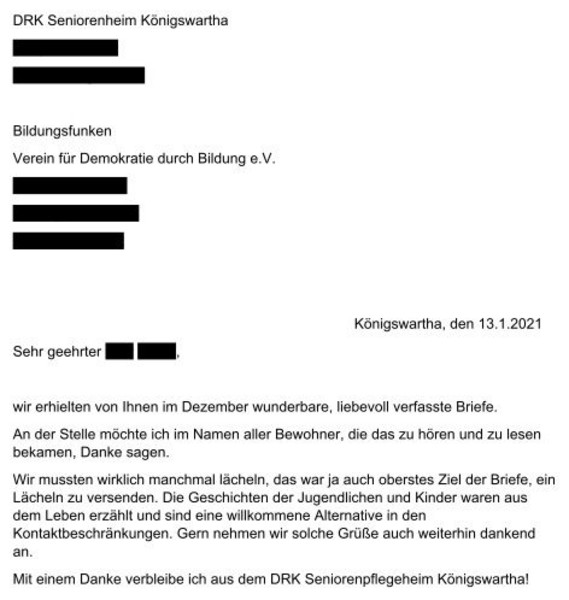 Reaktion aus dem DRK Seniorenpflegeheim in Königswartha