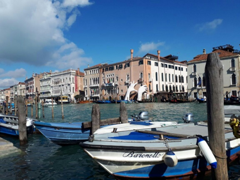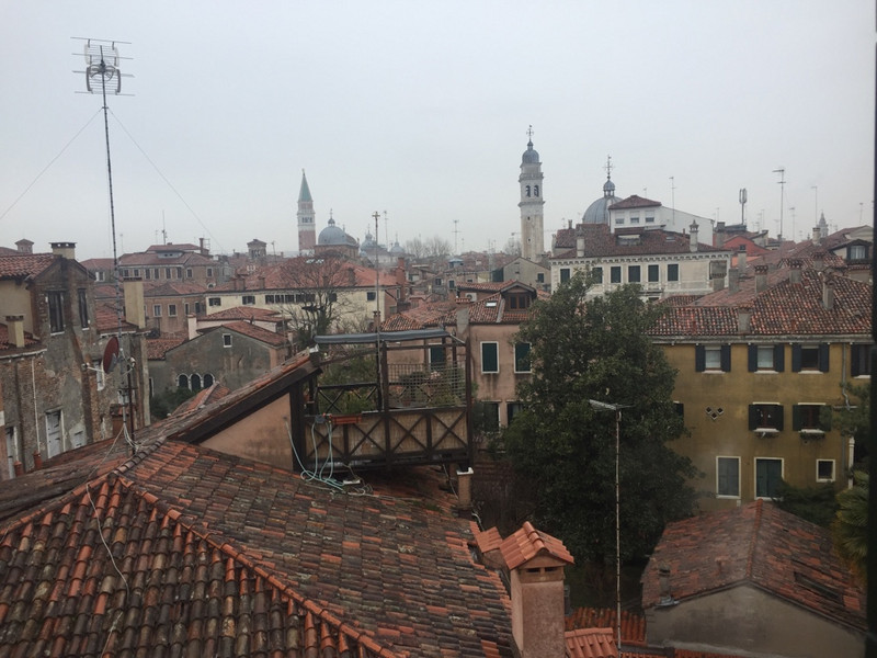 Pünktlich sind wir in Venice gelandet, siehe Gruppenbild :) das Motto ist Entschleunigung... und so gondelten wir genüsslich eine Stunde mit dem Boot in die Innenstadt und haben Quartier bezogen. (siehe Foto über den Dächern Venedigs) Jetzt gilt es die Stadt zu erkunden.