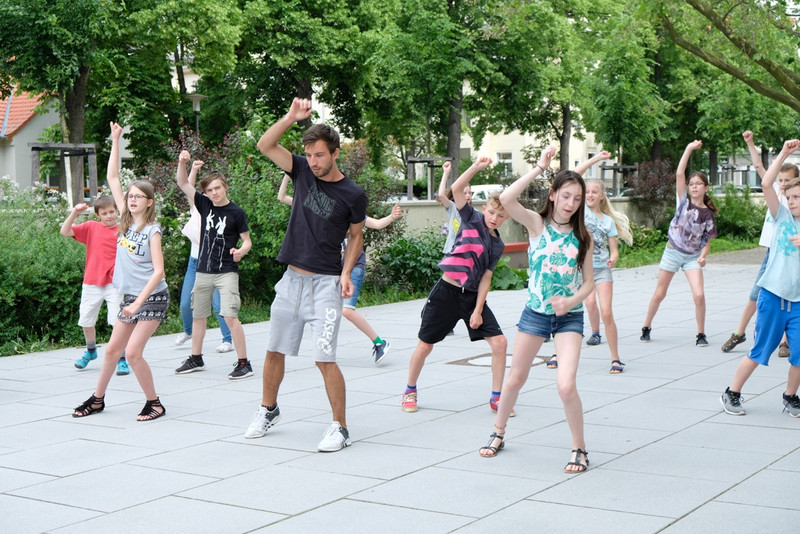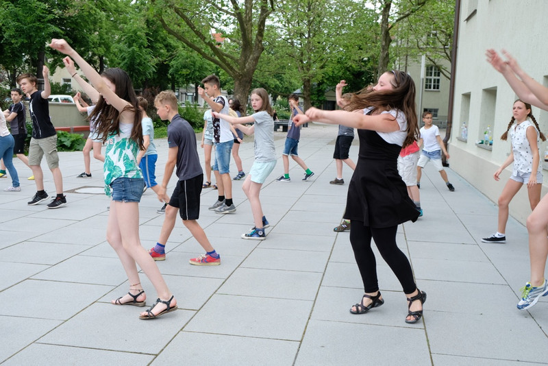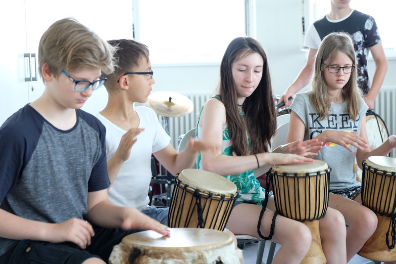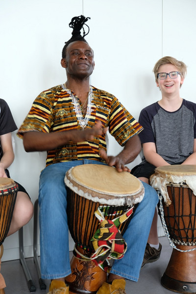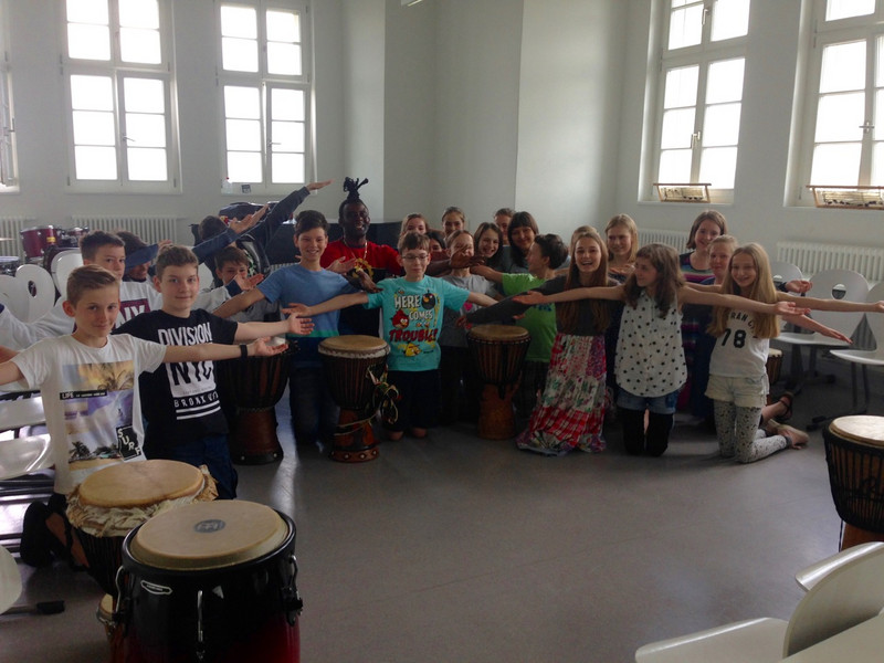 In einer „Rhythmusgruppe“ erlernten die Schüler/innen afrikanisches Trommeln, Singen sowie Bodypercussion und erhielten durch den Trommellehrer interessante Einblicke in das Leben in Angola. Darüber hinaus studierten sie eine Flashmob-Choreographie zu Michael Jackson’s „Beat it“ ein, welche in den kommenden Tagen in der Schule vorgeführt werden soll.