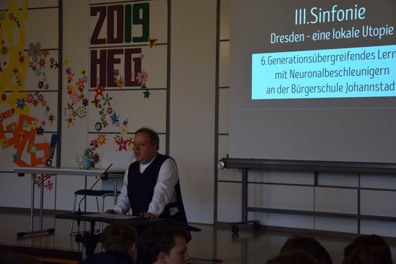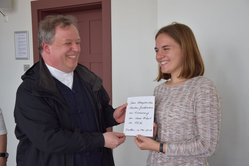 ..... waren weiterhin Unterrichtsbesuche des Komponisten am HEG im Rahmen des regulären Musikunterrichtes geplant, um das Erlebte zu besprechen. Ausgewählte Ergebnisse dieses Meinungsaustausches sollen auf der Homepage des Fördervereins Dresdner Philharmonie verwendet werden.