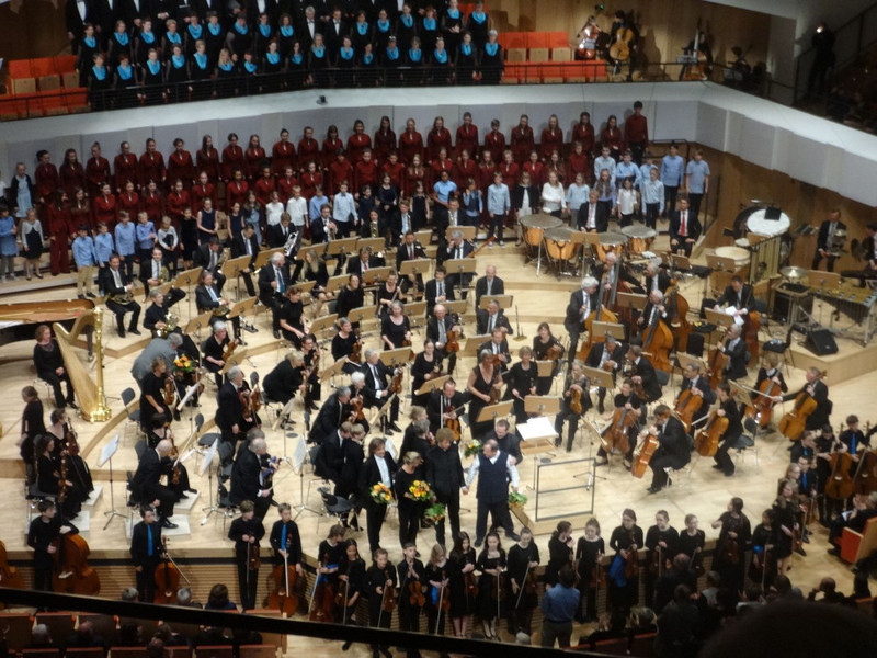 Bei der ersten Gesamtprobe des Philharmonischen Kinderchores, in dem ich seit einigen Jahren mitsinge, mit dem Orchester waren wir erst einmal total verwirrt, was die Musiker denn spielten. Das, was sie spielten, war ein Wirrwarr aus Instrumentenstimmen. Und obwohl wir in unseren Einzelproben die Stücke gut verinnerlicht gehabt hatten, so gab es bei der Probe mit dem Orchester schon Probleme dabei unsere Töne zu finden. Aber der Dirigent war da ganz unbeirrt und meinte: Das wird schon! Und es wurde auch.