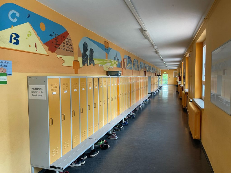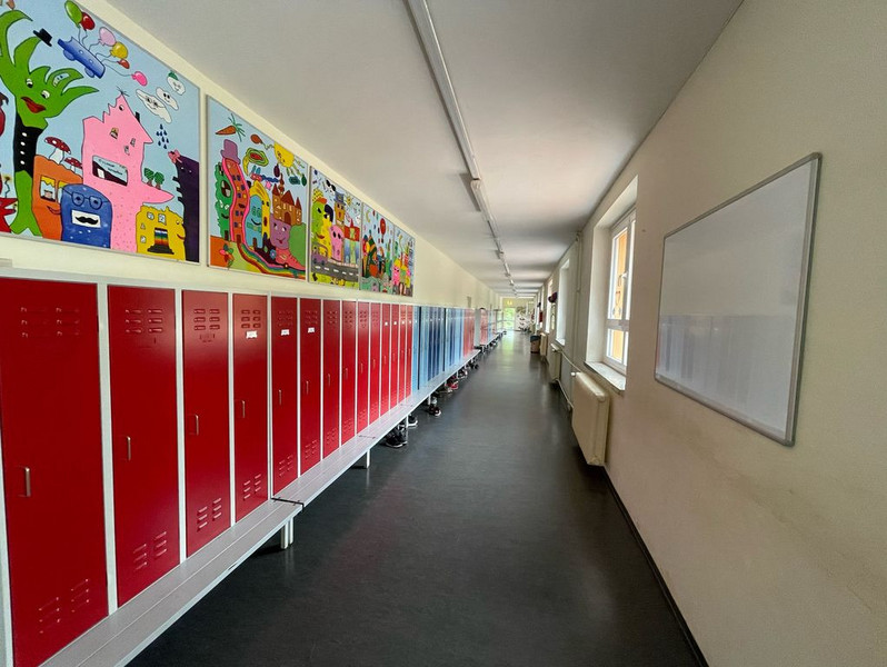 Im Erdgeschoss auf der rechten Seite befindet sich das Lehrerzimmer, Sekretariat und Schulleiterzimmer.
