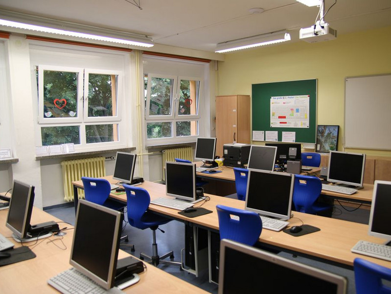 Im Computerzimmer recherchieren unsere Kinder im Internet, arbeiten mit dem Programm „Word“ und führen einmal im Jahr einen Informatikwettbewerb durch.