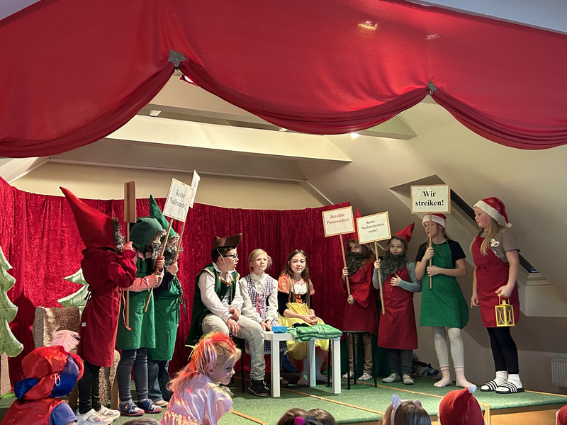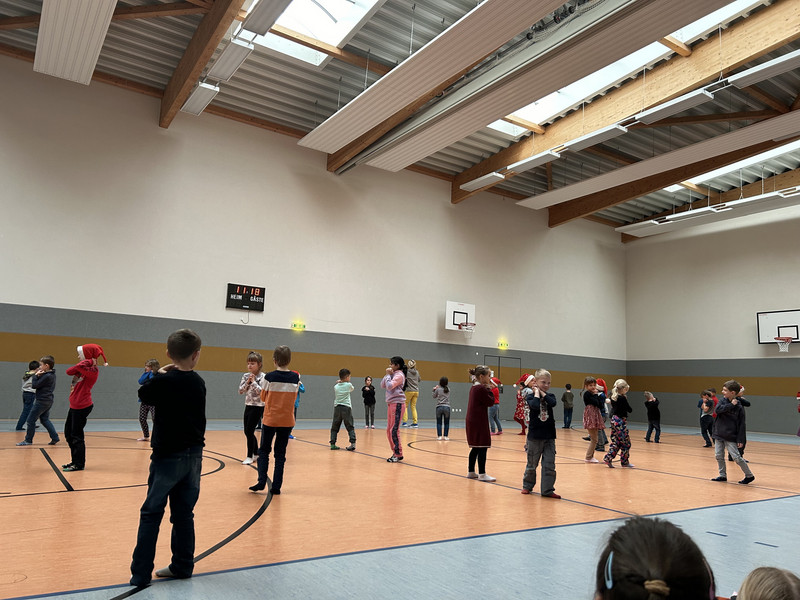 Am letzten Schultag verfolgten die Klassenstufen 1- 4 die Märchenaufführung „Es war einmal im 21. Jahrhundert“ unserer Theaterkids. Vielen Dank an alle Theaterkinder für dieses tolle Stück. In der Turnhalle führten unsere Schülerinnen und Schüler zusammen mit ihren Sportlehrerinnen verschiedene Weihnachtstänze vor. Mit unserem alljährlichen Treppensingen verabschiedeten wir uns in die wohlverdienten Weihnachtsferien.