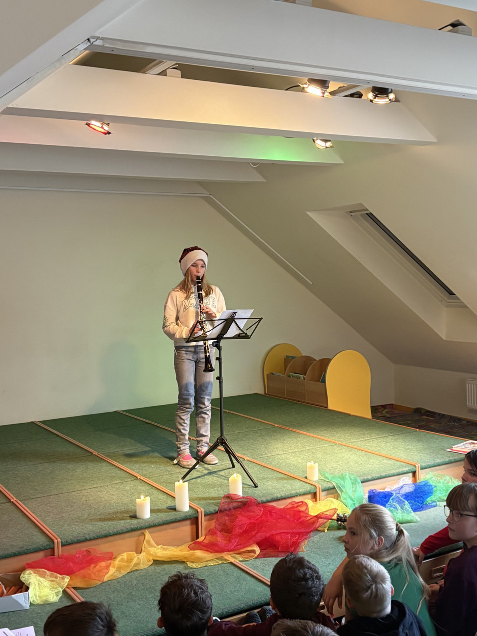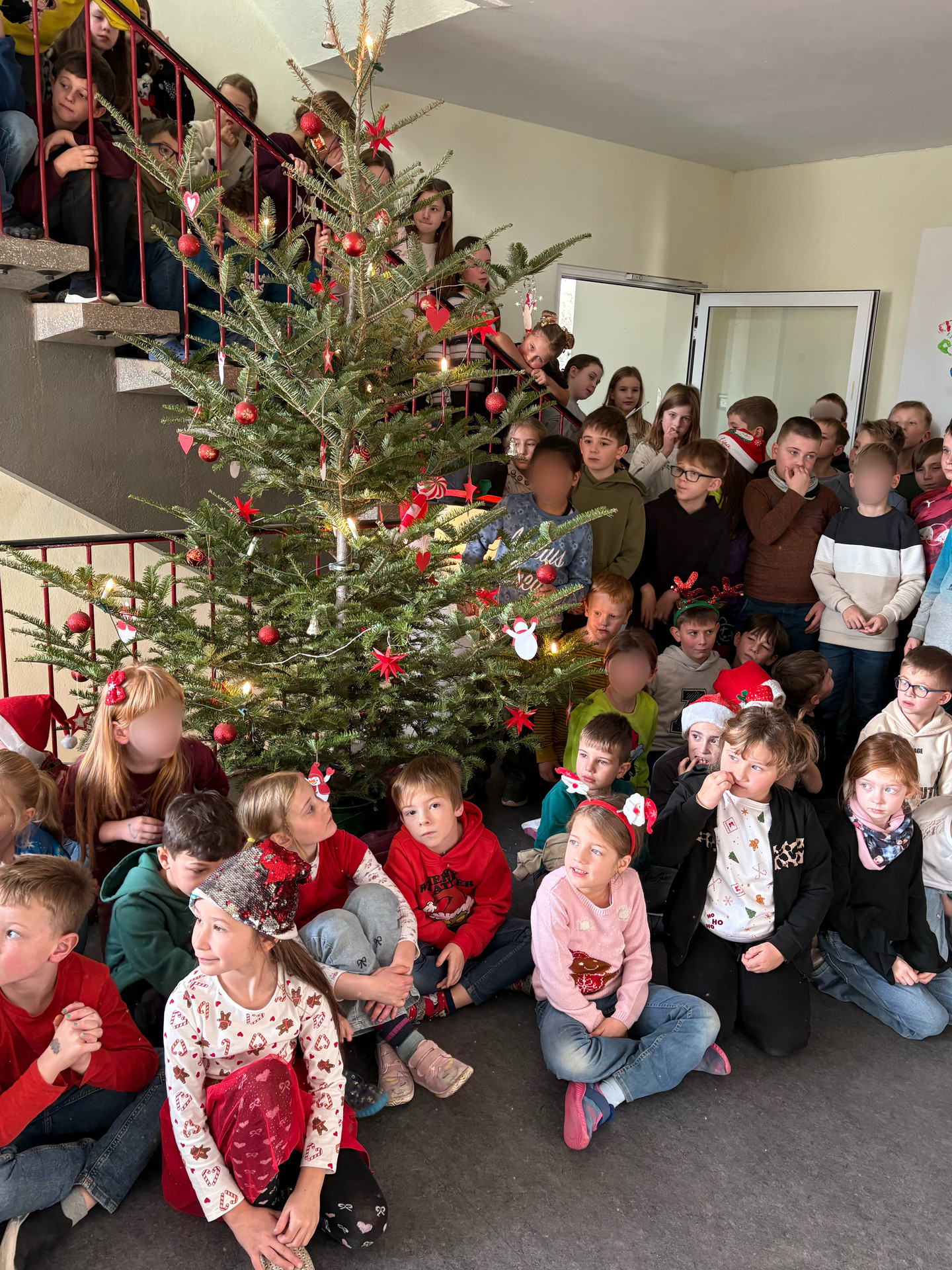 Zudem besuchte uns die Musikschule Clara-Wieck und sorgte mit musikalischen Beiträgen für eine besonders feierliche Weihnachtsstimmung. Beim traditionellen Treppensingen kamen schließlich alle zusammen, sangen gemeinsam Weihnachtslieder und ließen die festliche Atmosphäre noch einmal lebendig werden. Den Abschluss bildete das Lied " 's Raachermannel".