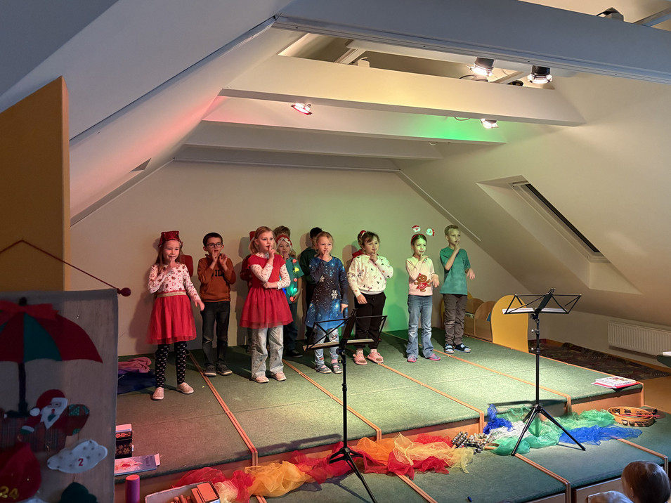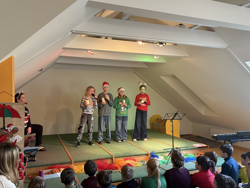 Am Dienstag und Mittwoch präsentierte die Theater-AG ein fröhliches Weihnachtsprogramm. Die Aufführungen begeisterten sowohl die Kinder unserer Schule als auch die eingeladenen Vorschulkinder aus den Kindergärten. Ein besonderer Dank gilt unseren Theaterkindern, die sich mit viel Fleiß, Ausdauer und großem Zeitaufwand auf ihre Auftritte vorbereitet haben. Ihr Engagement hat sich gelohnt – es waren rundum gelungene Aufführungen.