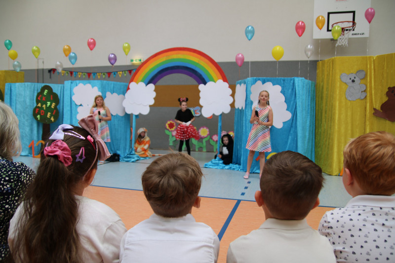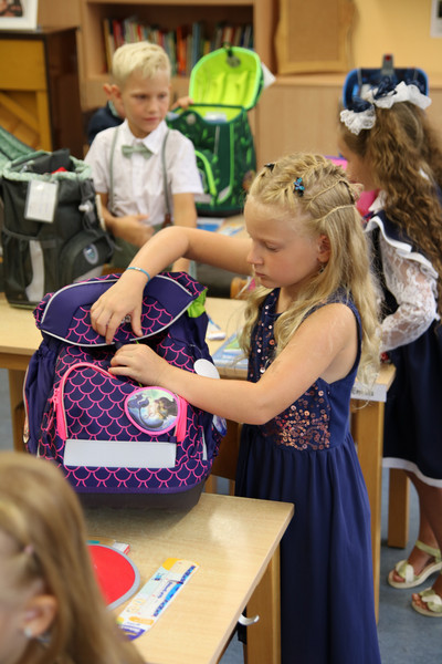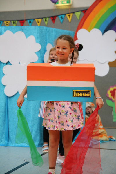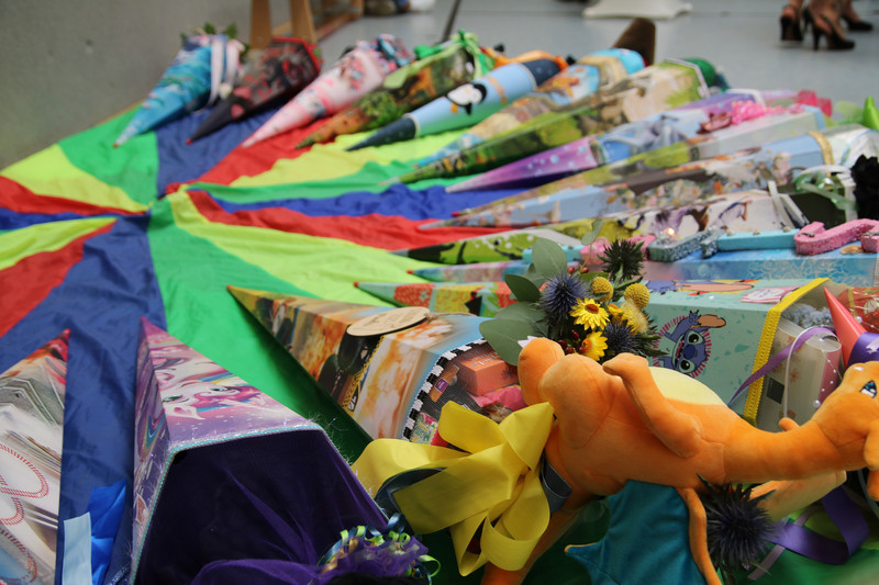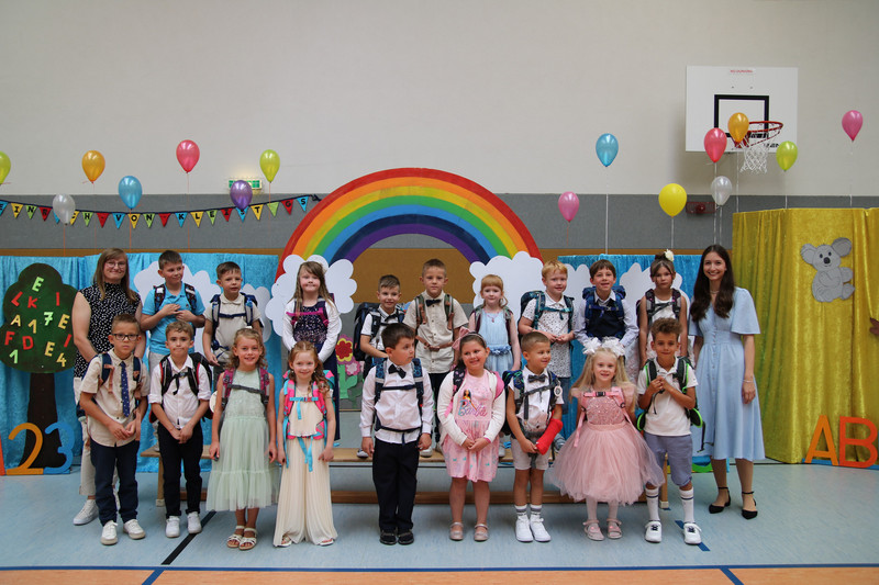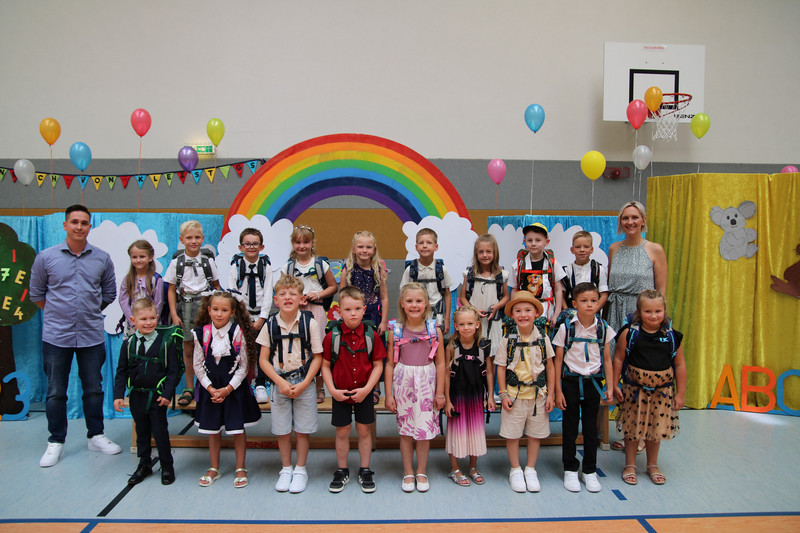 Nach einer herzlichen Begrüßung in der Heinrich-von-Kleist Turnhalle durch unsere Schulleiterin Frau Aurich, wurde das Programm durch eine Aufführung unserer Theaterkinder bereichert. Die Schulanfängerinnen und Schulanfänger verfolgten gespannt das abwechslungsreiche Schulanfangsprogramm, gemeinsam mit ihren Eltern, Großeltern und Geschwistern. Im Anschluss durften die Kinder zusammen mit ihrer Klassenlehrerin und den Horterziehern ihr neues Klassenzimmer entdecken. Schnell fanden sie ihre Plätze und packten ihre Schulsachen ein. Mit dem gefüllten Ranzen auf dem Rücken kehrten die Kinder zurück in die Turnhalle. Doch ein Highlight stand noch aus: die Zuckertüte! Der krönende Abschluss war die Übergabe der Zuckertüten durch Eltern oder Geschwister, bei der im Regenbogenraum wunderschöne Erinnerungsfotos entstanden.