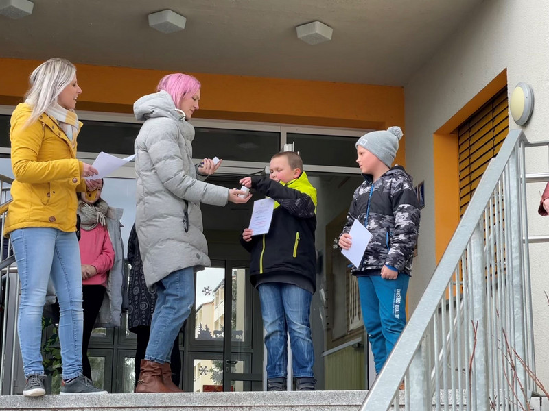 Am Freitag, dem 10.03.2023 wurden die beiden Schüler auf dem Schulhof von unserer Schulleiterin Frau Aurich für das tolle Ergebnis ausgezeichnet und erhielten eine kleine Aufmerksamkeit.