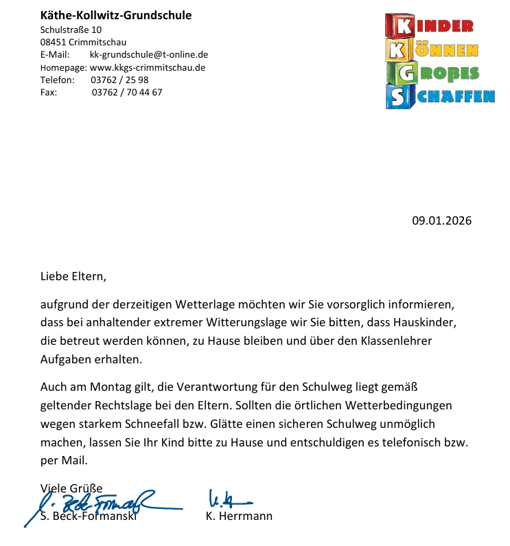 Empfänger: Käthe-Kollwitz-Grundschule Crimmitschau