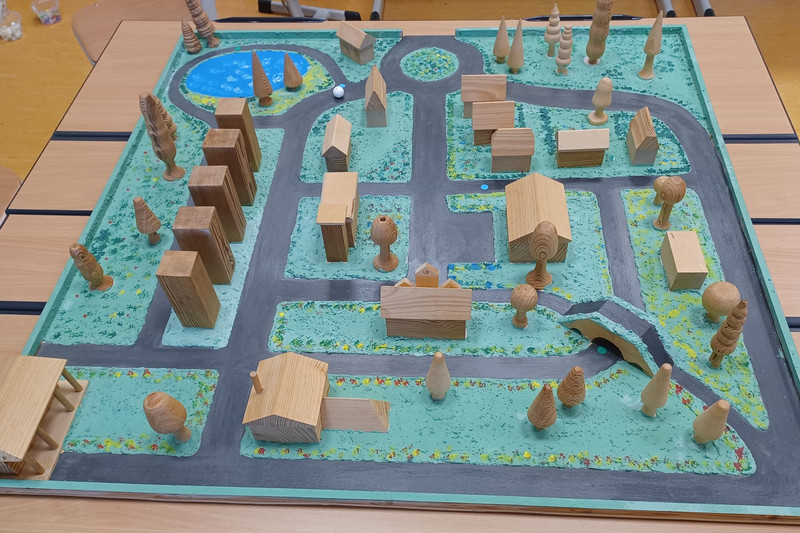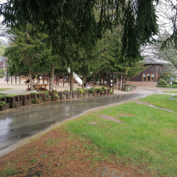 Am nächsten Tag wanderten wir nach dem Frühstück zum Raumfahrtmuseum nach Morgenröthe-Rautenkranz. Wir machten einen Zwischenstopp an einem See und ruhten uns kurz aus. Im Regen liefen wir weiter, sangen und nutzten unseren Regenschirm als „Mikrofon“. Die Lücken zwischen den Kindern wurden immer größer, denn vielen Kindern ging die Puste aus. Wir waren spät dran und durften nicht langsamer laufen. Im Raumfahrtmuseum erwartete uns eine abwechslungsreiche Führung und danach ein kurzer Film. Währenddessen schliefen einige Kinder sogar ein. Der Rückweg wurde unter Stöhnen angetreten. Wir konnten schon nach einem Kilometer nicht mehr und wurden immer langsamer. Es ging bergauf und bergab und eher als erwartet, sahen wir unsere Häuschen und den Spielplatz. Das war eine Freude. Wir kamen sogar noch pünktlich zum Mittagessen. Durch den Dauerregen konnten wir nicht in den Kletterwald. Stattdessen gingen wir in Kleingruppen auf den Boulderboden. Zuerst konnten wir uns selbst ausprobieren. Danach durften einige Kinder Wäscheklammern verstecken, die die anderen finden mussten. Abends waren wir noch im Indoor-Spielplatz und konnten uns lange verausgaben. Müde fielen wir ins Bett, schliefen aber längst nicht so schnell ein, wie sich das die Lehrerinnen und Begleitpersonen gewünscht hätten.
