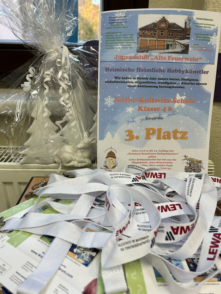 Ein sportlich erfolgreiches Jahr 2024 neigt sich dem Ende. Auf viele erfolgreiche Sportwettkämpfe kann die Käthe – Kollwitz – Grundschule in diesem Jahr zurückblicken. Die letzten Wettkämpfe fanden im September, November und im Dezember statt. Zum Crosslauf im September im Sahnpark erlief sich unser jüngster Starter aus der 1b sofort den zweiten Platz. Drei weitere Platzierungen erreichten unsere Läufer. Von der Stadtmeisterschaft im Hochsprung kehrten unsere Teilnehmer mit 12 Medaillen zurück. Ein ganz tolles Ergebnis. Unser letzter Wettkampf war im Dezember die Regionalmeisterschaft im Floorball. Unser Team belegte hierbei den zweiten Platz. Vielen Dank an alle Teilnehmer und Helfer, die uns dieses Jahr solche Ergebnisse ermöglichten.