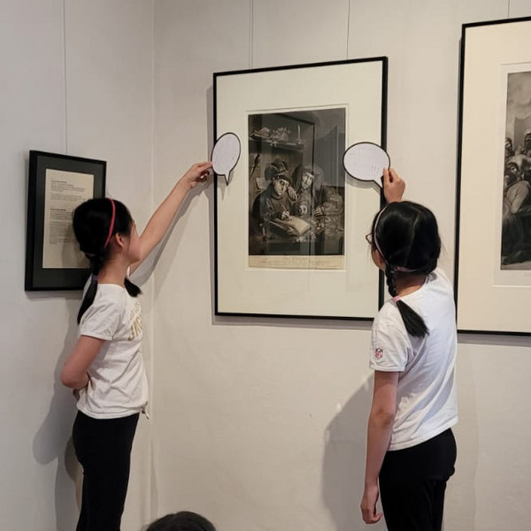 Die Schülerinnen nahmen an einer Mitmachführung zur Sonderausstellung „Very British“ im Schloss Hinterglauchau teil. Gemeinsam erkundeten die kleinen Künstler die Ausstellung mit Frau Günther –Sperber, der Museumspädagogin. Sie fertigten selbst Skizzen an, spielten eine Runde Pferderennen, puzzelten und schrieben eine Grußkarte ins Königshaus. Abschluss bildete die „Tea Time for Kids“ mit leckeren Sandwiches mit Orangenmarmelade wie bei Paddington Bär. Ehrlich, den Kids hat die Erdbeermarmelade besser geschmeckt. Und ganz nebenbei testeten alle ihr Wissen rund um die britischen Inseln und deren Kultur bei einem Quiz. Wir danken Frau Günther –Sperber für diesen tollen Nachmittag im Schloss!