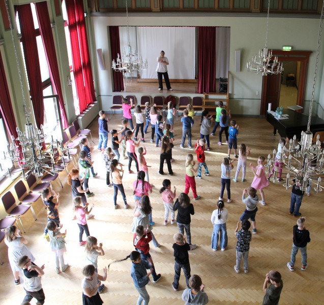 Die dritten Klassen stimmten alle mit ihrem Lied "Die Ferien sind da" auf die bevorstehende freie Zeit ein. Mit dem Stück "Das Beste geben" verabschiedeten sich die vierten Klassen aus der Grundschule. Das Highlight bildete der gemeinsame Hip-Hop-Tanz, den die Kinder vor kurzem in einem Projekt erlernt hatten. Alle waren trotz des geringen Platzes voller Engagement dabei.