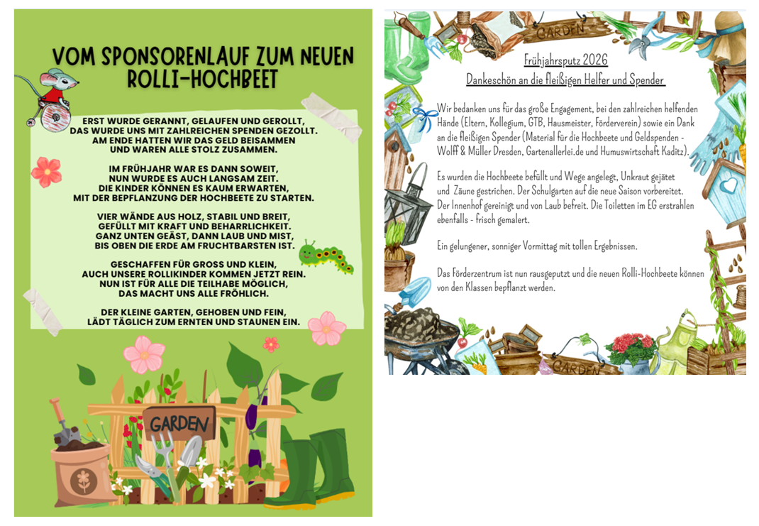 Wir bedanken uns bei allen fleißigen Helfern, dem Elternrat, unserem Förderverein „Rollimaus“ und WOLFF & MÜLLER für die großzügige Spende und Unterstützung.