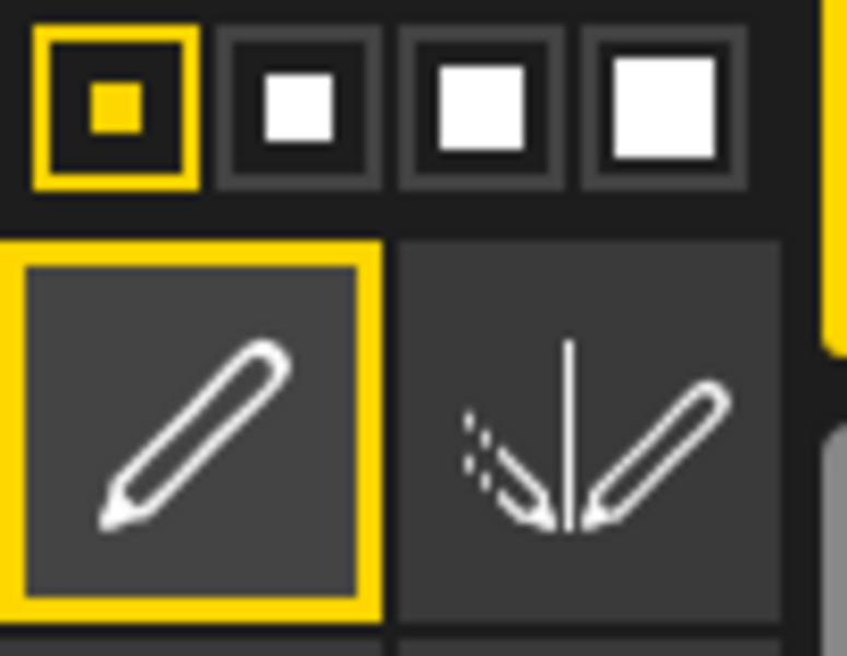 Über der "Werkzeugkiste" befindet sich die Auswahl der Werkzeuggröße. Sprich wird nur 1,4,9 oder 16 Pixel gemalt.