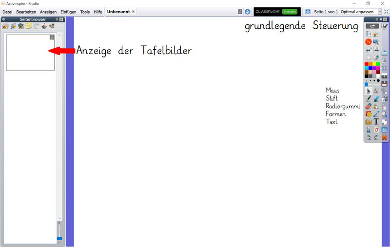 Neben ActivInspire kann alternativ auch ClassFlow zur Erstellung von Tafelbildern genutzt werden. Im Folgenden wird ein Einblick in das Programm ActivInspire und ausgewählte Werkzeuge gegeben.