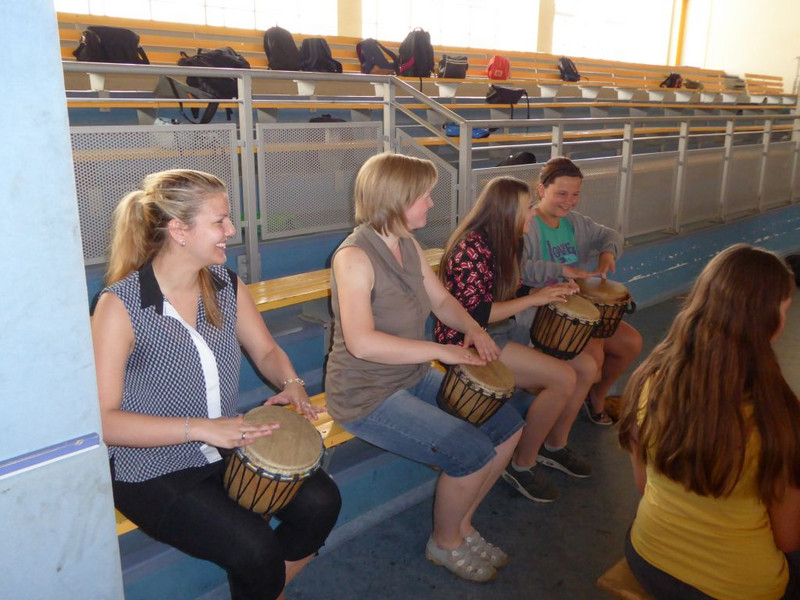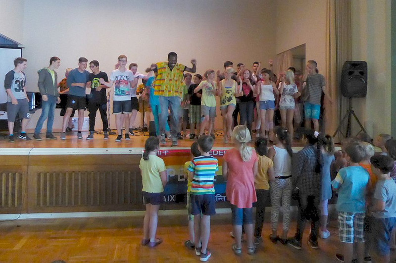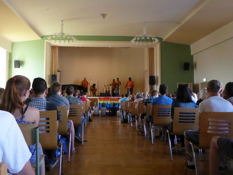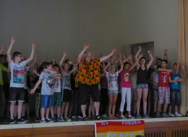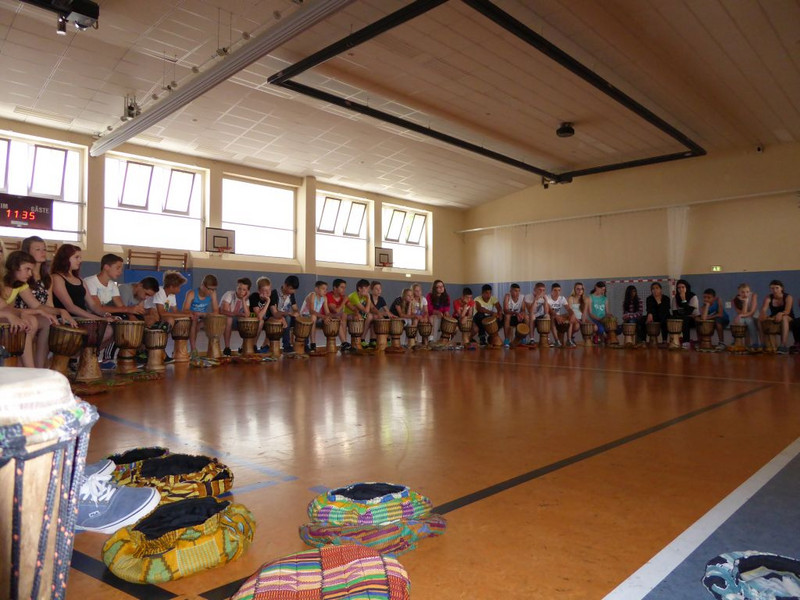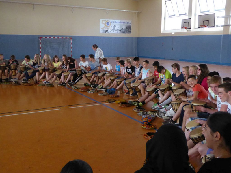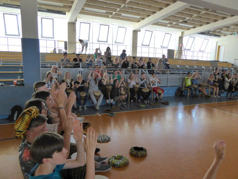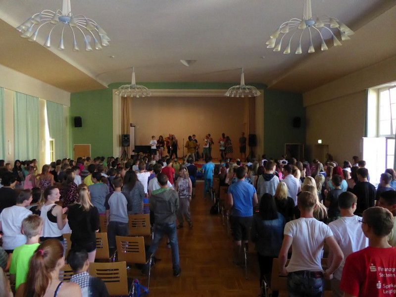 Natürlich läuft nichts so wie geplant! Nachdem heute früh alles aufgebaut war, alle Schüler pünktlich erschienen sind, unsere Gäste von der UNICEF-Arbeitsgruppe Chemnitz ihren Infostand augebaut hatten, begann es zu regnen.