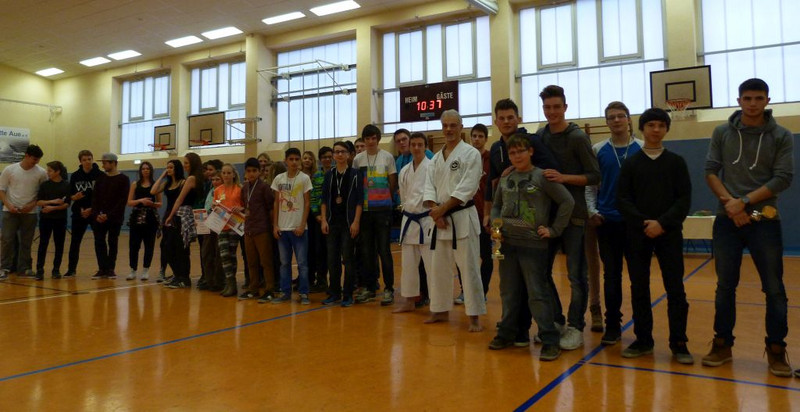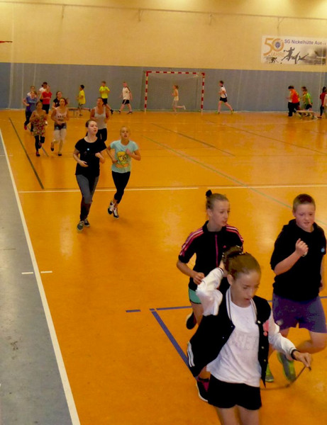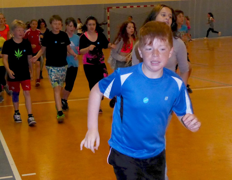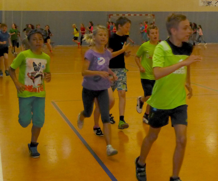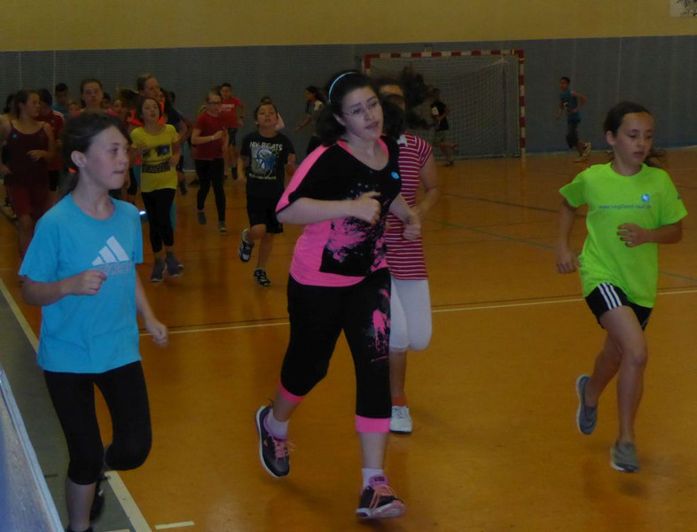 Also schnell in die Turnhalle umgezogen, so daß die Klassen 5 und 6 ihren Lauf im Trockenen absolvieren konnten. Ab Klassenstufe 7 ging`s dann draussen weiter. Alle gemeldeten Schüler trugen ihren Anteil zum Spendenergebnis bei (es wird noch gezählt), die Spitzenläufer schafften sogar Distanzen von mehreren Kilometern!