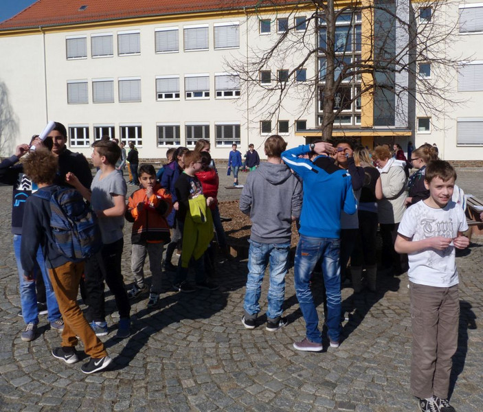 Das Schauspiel ist vorbei, das Wetter war super und fast die gesamte Schule hat gebannt nach oben geschaut! Hier ein paar Eindrücke...