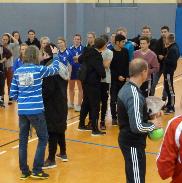 Am Montag trafen in unserer Turnhalle die besten Handballmannschaften der WKII der SBA Chemnitz aufeinander. Da die Gegner Gymnasien aus Chemnitz und Döbeln waren, hatten wir schon einmal den Titel der besten Oberschule sicher.