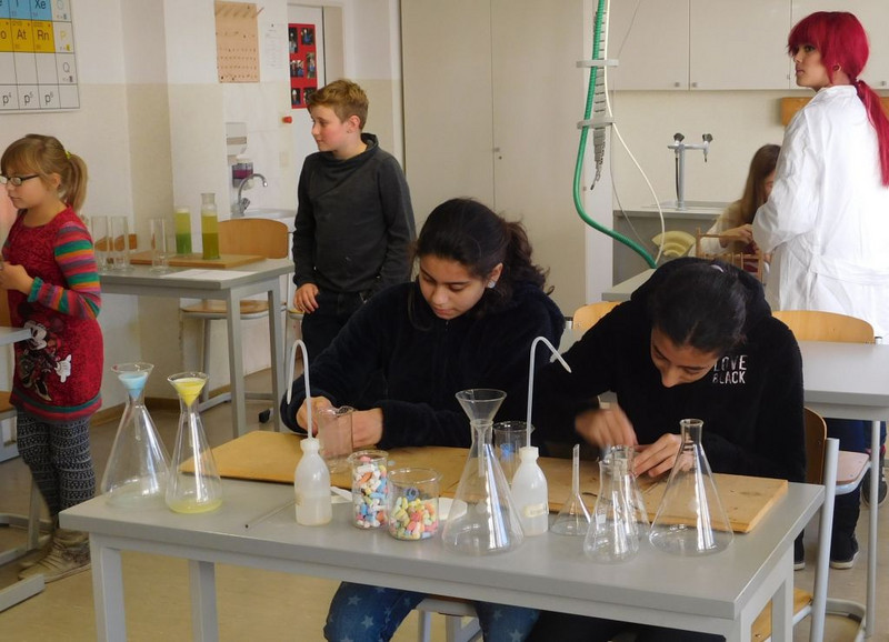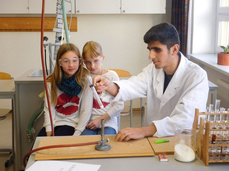 Viele Unterrichtsfächer stellten sich vor (PH, Ch, Bio, Geo, Ge, NK, Info, Deutsch als Zweitsprache...), die Ganztagsbetreuung präsentierte ihr Angebot, in der Turnhalle lockten Sport und Spiel und die Autogrammstunde mit Spielern des FCE Besucher an.
