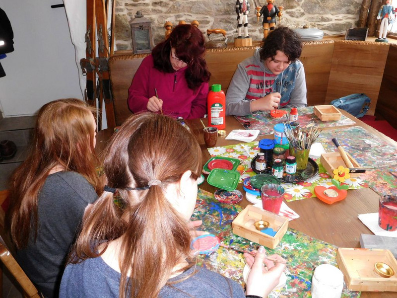 Wir, die Klasse 6b waren in Waschleithe im Hollandheim auf Klassenfahrt. Dort haben wir den Tierpark und das kleine Erzgebirge besucht und sind 250 Stufen ins Bergwerk hineingestiegen. Die Mädchen stellten in der Bastelwerkstatt kleine Geschenke für den Muttertag her, die Jungen ließen es sich in dieser Zeit in der Eisdiele schmecken.