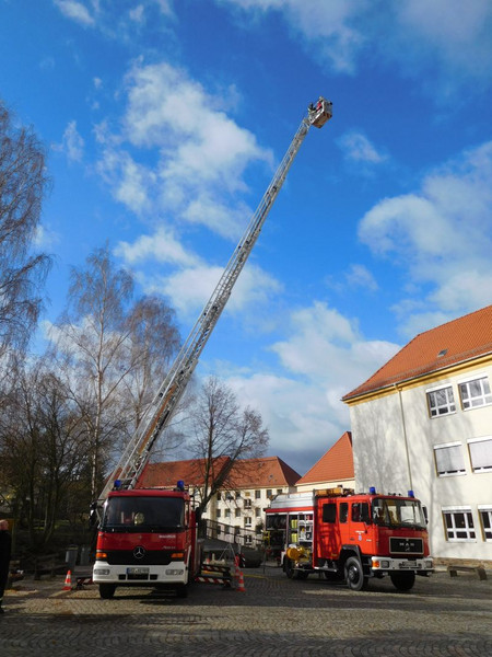 Der Blick über die Stadt von der Drehleiter der Feuerwehr Aue war wie immer ein Zuschauermagnet.