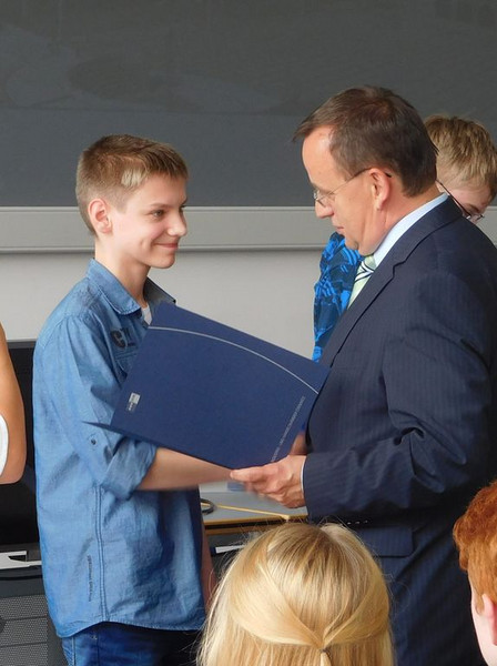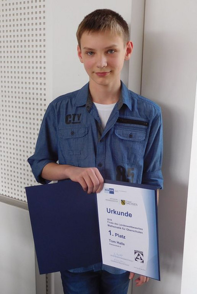 Wie schon im vergangenen Jahr erwies sich Tom Halle aus der Klasse 8a als außerordentlich erfolgreich und belegte unter 10 Startern aus 10 Schulen einen hervorragenden 1. Platz. Er wird unseren Erzgebirgskreis am 25. Mai 2016 beim Sachsenfinale des Landeswettbewerbs Mathematik der Oberschulen in Chemnitz vertreten.
