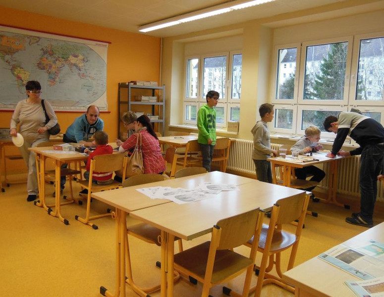 Auf dem Stundenplan stehen dabei Sport, Lösen eine Aufgabe am PC, Backen in der Schülerküche und die "neuen" Fächer Biologie und Physik. Den Abschluß bilden ein Besuch in der Ganztagsbetreuung und das Verkosten der selbst gebackenen Brötchen.