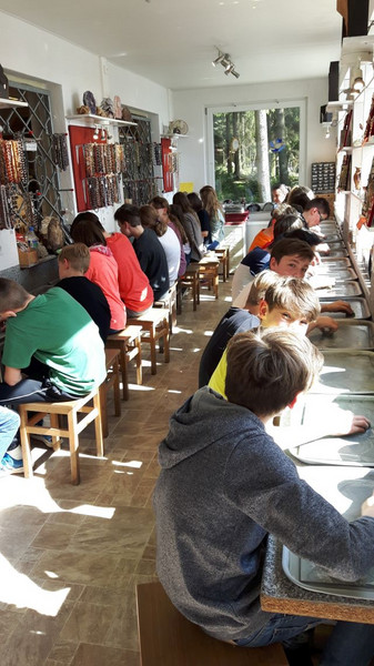 In „Tonis Haus der Steine“ übten sich die Schüler mit Ausdauer und Geduld beim Schleifen von Edelsteinen.
