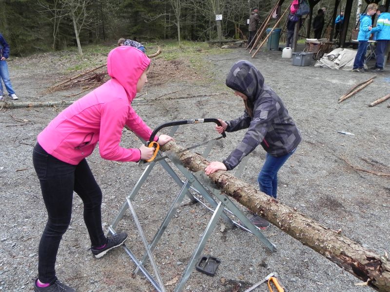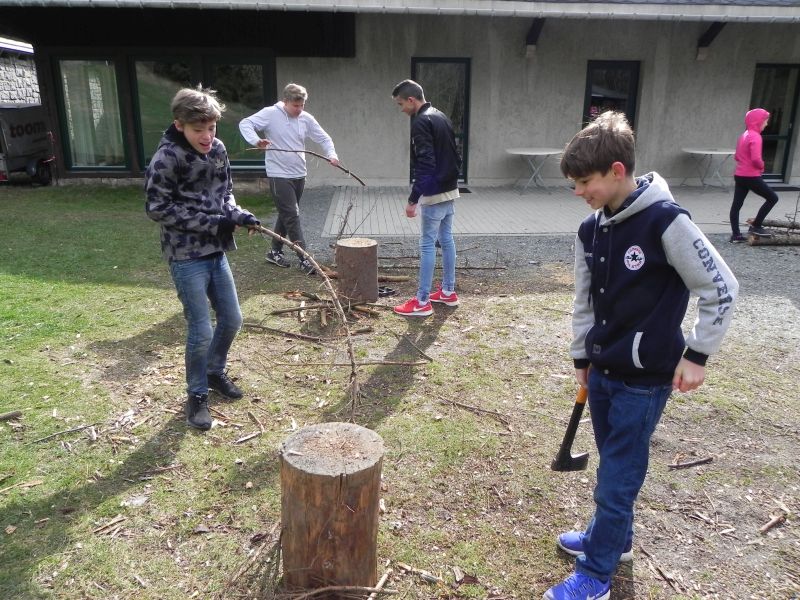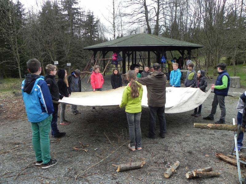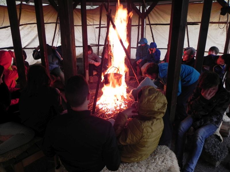 Zurück zur Natur hieß es beim 4-stündigen „Stoneage“-Projekt, bei dem die Schüler in die Vergangenheit reisten und unter professioneller Anleitung Holz hackten, ein Zelt aufbauten, eine Feuerstelle anlegten, Brennnesseltee zubereiteten und letztendlich gemeinsam auf Schatzsuche gingen.