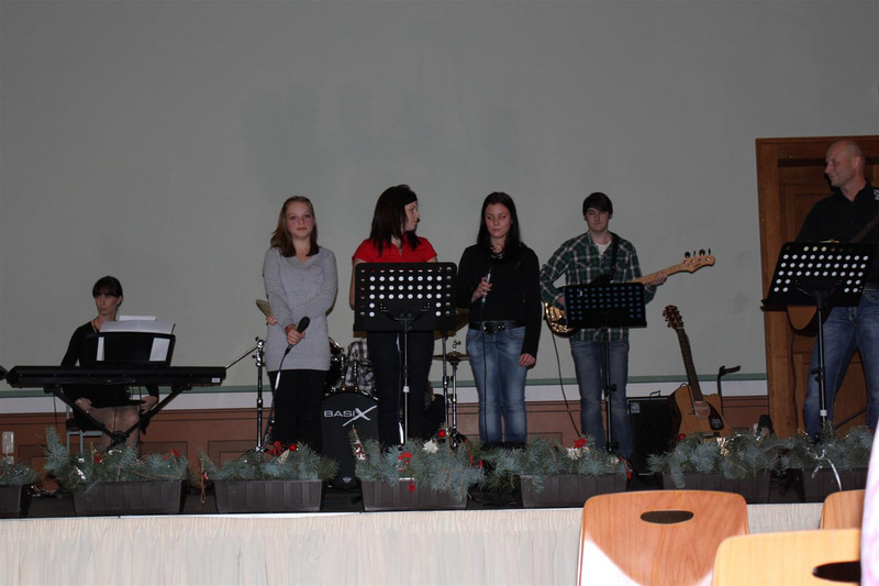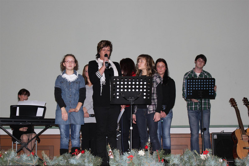 Die Schulband der Schule läutete die weihnachtliche Stimmung ein. Danach eröffnete Silke Fingas offiziell die Veranstaltung, stellte alle Künstler vor und wünschte allen Anwesenden einen schönen Abend, besinnliche Momente und ein Loslassen vom Alltagsstress. Auch ein Mitsingen war erwünscht, dem die Besucher des Weihnachtskonzertes gerne nachkamen.