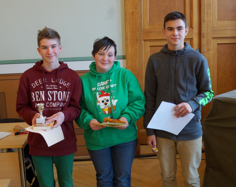 Bei den Großen reichten in diesem Jahr relativ wenige Punkte, um sich im Spitzenbereich zu platzieren, aber Sieg ist Sieg, und der ging an Fabian Günther aus der 9b, dicht gefolgt von seiner Mitschülerin Chiara Bär (9b) und Nico Wolf (9c).