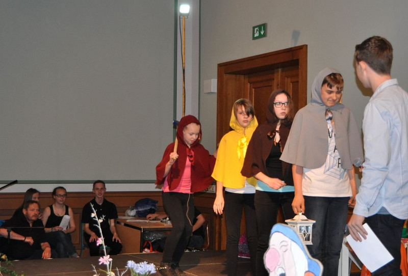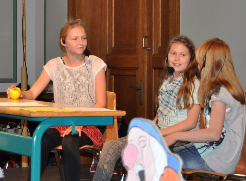 Und wo wurden nun letztlich die Zwerge untergebracht? Nun ja, manchmal lösen sich Probleme von selbst in Wohlgefallen auf – Schneewitchen hat seinem untreuen Prinzen den Laufpass gegeben und ist reumütig und dienstbeflissen ins Zwergenhaus zurückgekehrt, woraufhin auch die kleinen Zipfelmützen auf schnellstem Wege zurück ins Märchenland wollten – Ende gut, alles gut und hoffentlich auch bald wieder eine neue Präsentation der Talente an der Robert-Härtwig-Schule Oschatz, vielleicht kommen ja im August jede Menge neue dazu!?