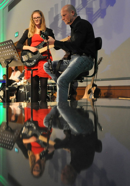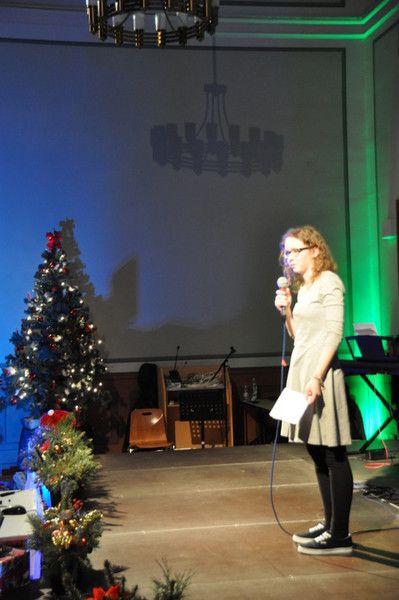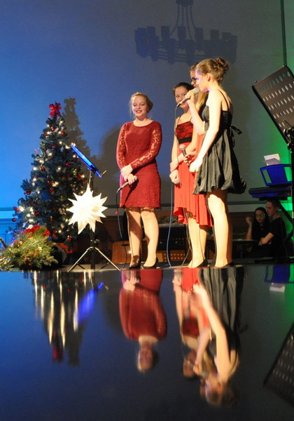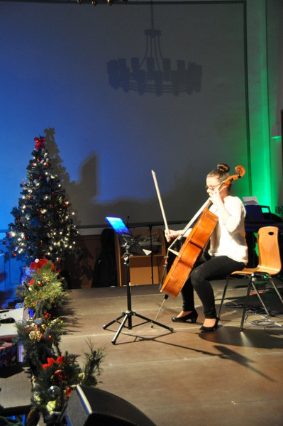 Eingestimmt von Moderatorin Carolin Werner und der famosen Schulband spannte sich der vorweihnachtlich-besinnliche Bogen von Rezitationen durch Syna Brüggemann und Elena Geister, zu von Herrn Grosser präsentierten Orgelklängen und Desiree Beirichs Cello-Darbietung bis hin zum Finale mit der Schulband und dem großen Publikums-Chor beim gemeinsamen Singen der ‚Stillen Nacht‘.