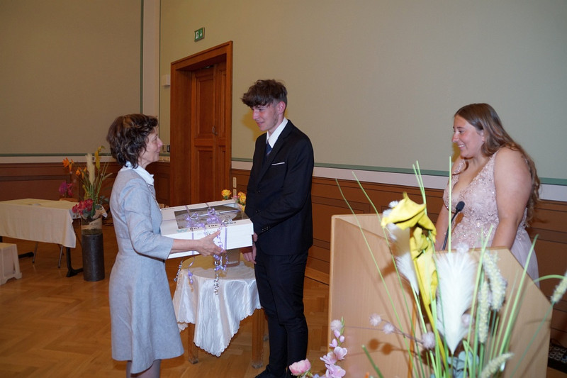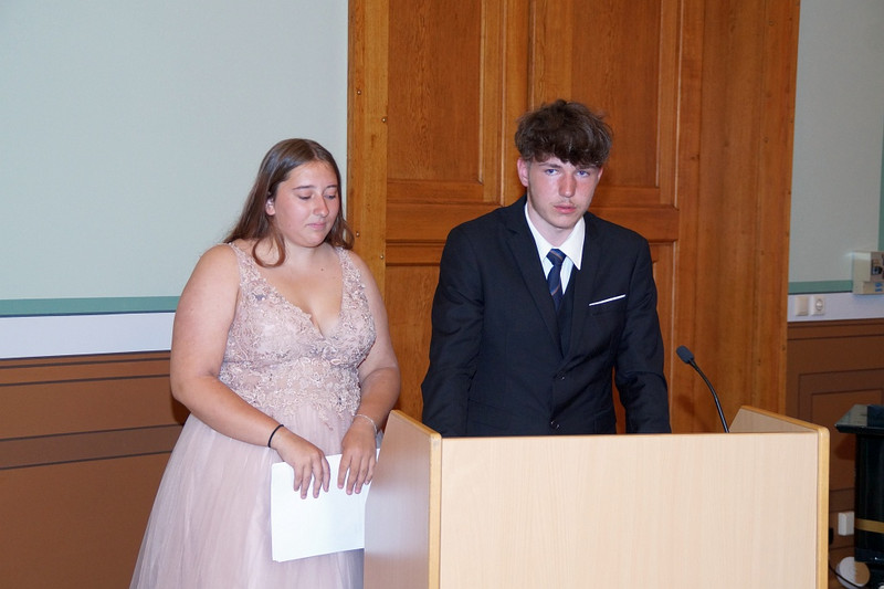 Am Freitag, dem 15.07.2022, war im ersten Durchgang die Abschlussklasse 10b an der Reihe, ihre Zeugnisse in Empfang zu nehmen. In der einstündigen Feierstunde, kulturell umrahmt von Leon Haufe am Flügel, wurde Rückschau gehalten, wie auch in die Zukunft geblickt. Besonders gewürdigt wurde Tobias Bachmann für den besten Abschluss der Klasse mit einem Eintrag in das Ehrenbuch. Wir wünschen allen Absolventen alles Gute für den weiteren Lebensweg!