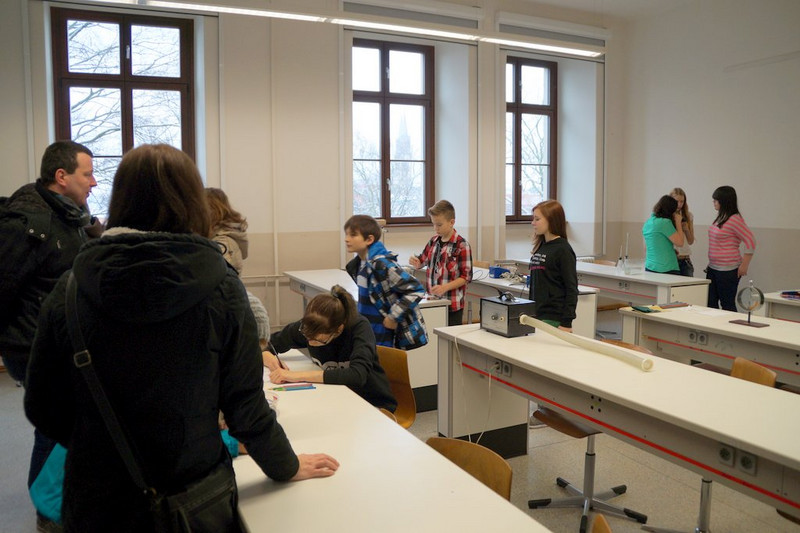 Am 24.01.2015 fand an der Robert-Härtwig-Schule der Tag der offenen Tür statt. Motiviert und gut vorbereitet wurden die Türen um 9 Uhr geöffnet. In Empfang wurden die Besucher von den "Plaudertaschen", die zusammen mit Vertretern der Schülersprecher Führungen durch das Schulhaus anboten. Fast alle Fächer wurden in verschiedenen Zimmern und Fachkabinetten vorgestellt, die Lehrer standen Rede und Antwort. Das Schülercafè wurde durch die Klassen 10b und 10c betrieben und zahlreiche Gewinne konnten in einer Tombola den Besitzer wechseln. Weitere Besonderheiten, wie z. B. der Förderverein, die Berufsorientierung, die GTA-Angebote (Ganztagsangebote), der Mini-Zoo und LEGO wurden vorgestellt. Wer es in die dritte Etage geschafft hatte, konnte der Schulband lauschen oder Instrumente bestaunen. Wie immer, waren einige ehemalige Schüler unter den Besuchern. In Gesprächen konnten die Lehrer erfahren, wie die weiteren Lebenswege aussahen. Um 12 Uhr wurden dann die Türen wieder geschlossen.