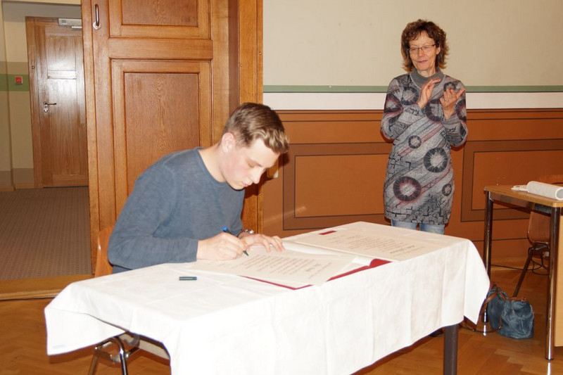 Am 14.10.2021 fand in der Aula der Schule die Mitgliederversammlung des Fördervereins statt. Pandemiebedingt musste die Veranstaltung im Jahr 2020 leider ausfallen. Aus diesem Grund gab es diesmal mehrere Auszeichnungen für die besten Schülerinnen und Schüler der letzten beiden Abschlussjahrgänge, verbunden mit dem Eintrag in das Ehrenbuch der Schule: Melanie Tietze, Lara Uhlemann, Lily Biedermann, Jannis Bahr im Schuljahr 2020/2021 sowie Felix Haugk und Marek Goldammer im Schuljahr 2019/2020. Diese Ehre wurde ebenso den ehemaligen Kolleginnen zuteil, die in den letzten beiden Schuljahren in den verdienten Ruhestand wechselten: Frau Schladitz und Frau Müller.