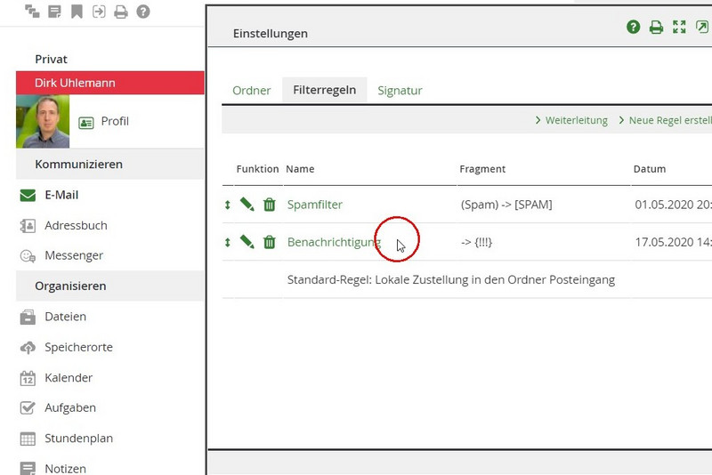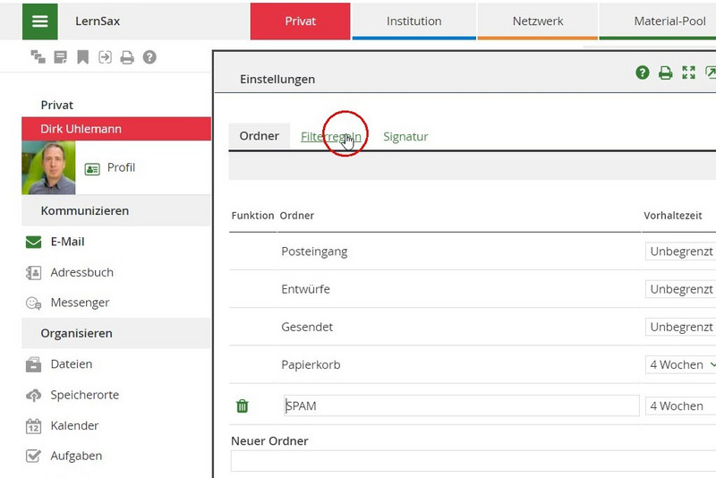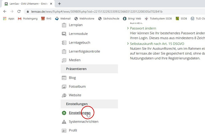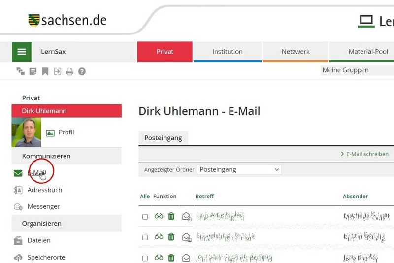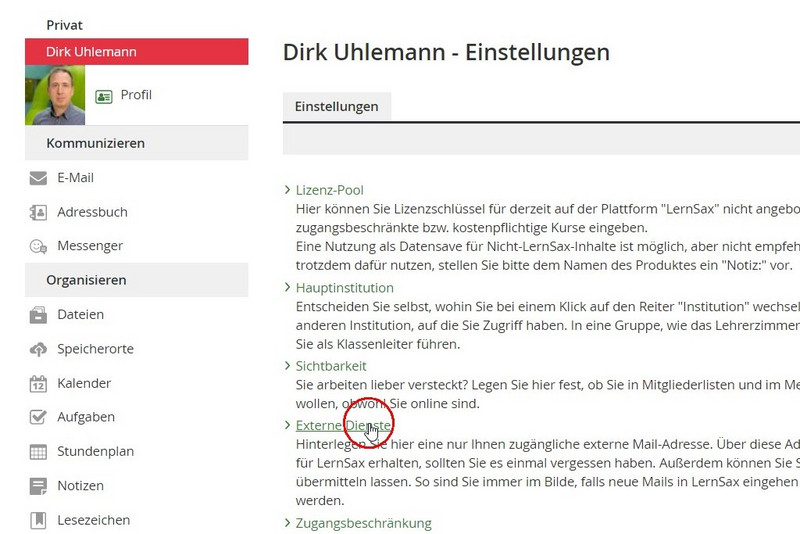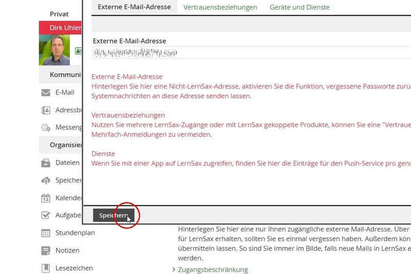 So richten Sie eine Benachrichtigung an eine externe E-Mailadresse bei eingehenden E-Mails in LernSax ein.