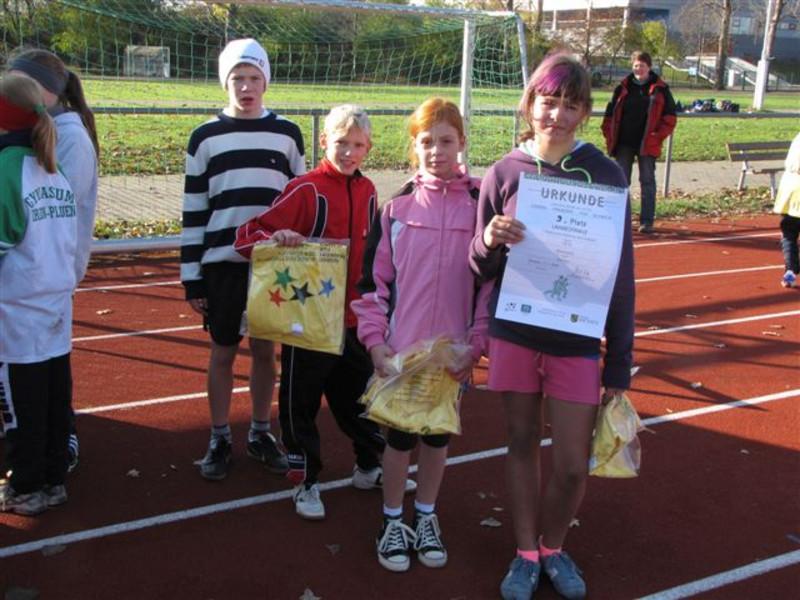 Am 12.11.2009 fuhren 10 Schüler unserer Schule zum Landesfinale im Crosslauf. Dieser fand in Dresden im Ostragehege statt. Die Mannschaft der 6. Klasse belegte einen 9. Platz und die Mannschaft der 8.-10. Klasse einen 6. Platz.