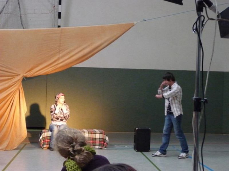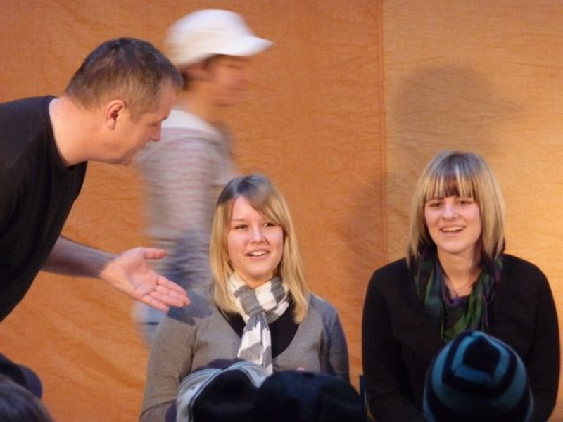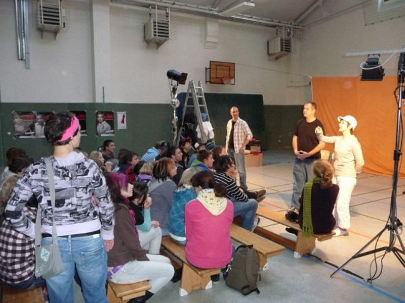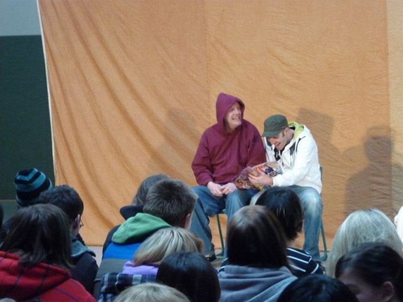 Am 3. Dezember gastierte eine Schauspielgruppe aus Nürnberg in der Turnhalle unserer Schule. Mitzuerleben war Theater der anderen Art, denn nicht nur dasitzen und zuschauen war angesagt!