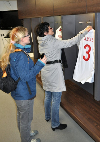 Am Mittwoch trafen wir uns am Morgen wieder am Bus, der uns zum wohl berühmtesten Stadion in Großbritannien brachte – zum Wembley Stadion! Wir versuchten, uns von dem eher hässlichen Wetter nicht die Stimmung vermiesen zu lassen! In Wembley saßen wir dann im Pressesaal oder in der Umkleide der Fußballer, in der königlichen Loge oder standen auch am Spielfeldrand oder auf der Tribüne – viele Gelegenheiten für tolle Fotos.